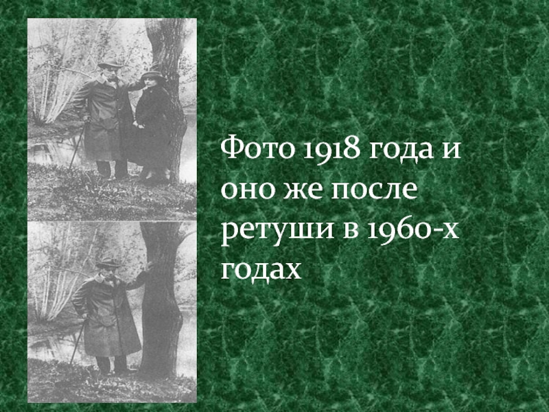 Слайд 9Фото 1918 года и оно же после ретуши в 1960-х годах