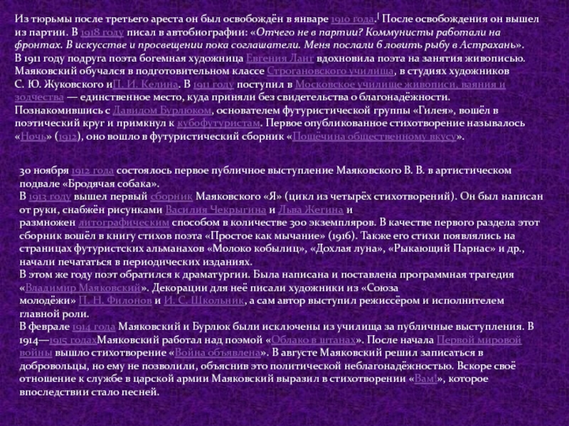 Слайд 4Из тюрьмы после третьего ареста он был освобождён в январе 1910 года.[ После