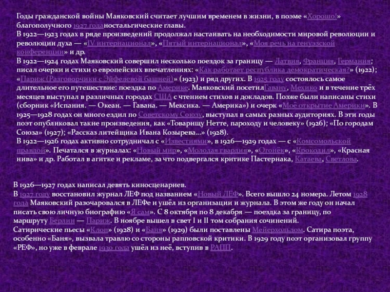 Слайд 8Годы гражданской войны Маяковский считает лучшим временем в жизни, в поэме