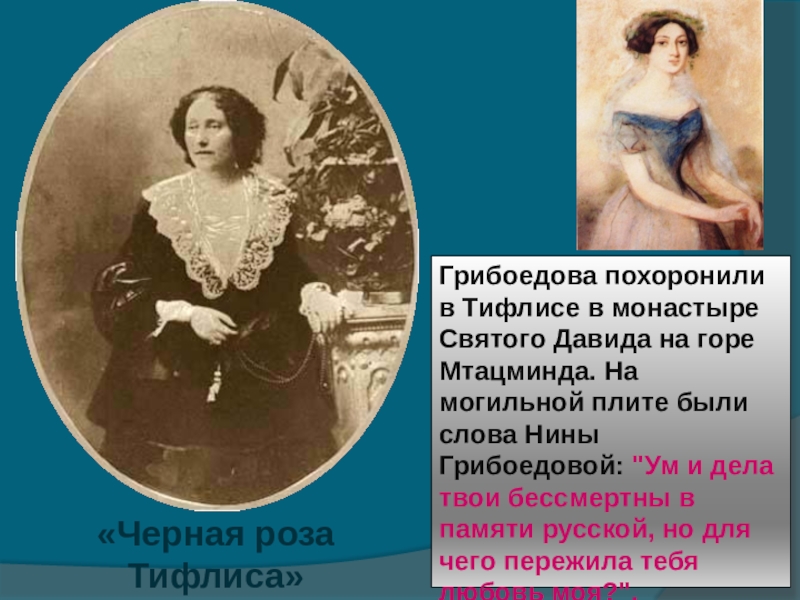 Судьба А.С Грибоедова сложилась весьма трагично, как у большинства творческих людей. Всегда тяжело воспринимать столь ранний уход великих личностей. «Как жаль, что Грибоедов не оставил своих записок! Написать его биографию было бы делом его друзей; но замечательные люди исчезают у нас, не оставляя по себе следов». Так писал о Грибоедове Пушкин.