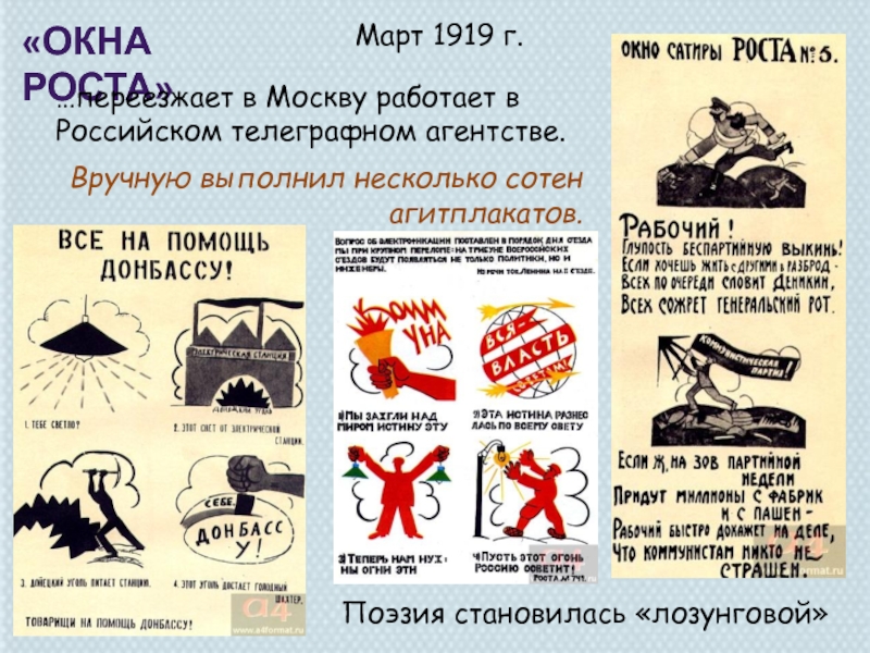 агитационно-направленного «Окна»: все рисунки подчинены одной теме, последовательно раскрываемой в стихотворном тексте (4-6-8-12)