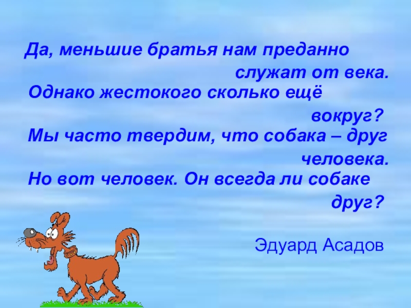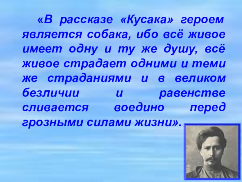 Слайд 7 «В рассказе «Кусака» героем является собака, ибо всё живое имеет одну