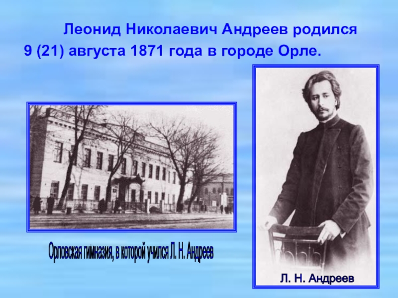 Леонид Николаевич Андреев родился 9 (21) августа 1871 года в городе Орле.