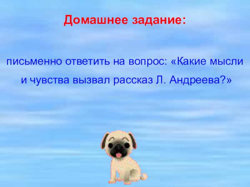 Домашнее задание:письменно ответить на вопрос: «Какие мысли и чувства вызвал рассказ Л. Андреева?»