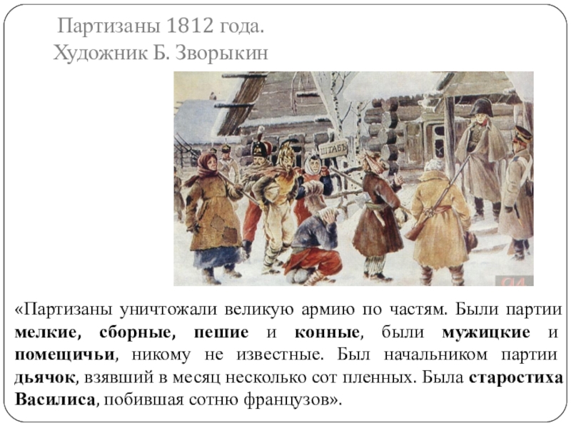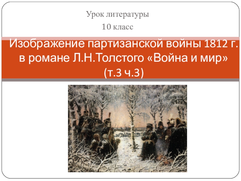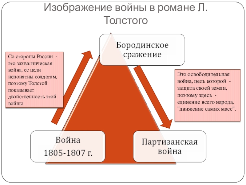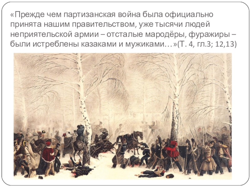 Партизанская война носит народный освободительный характер. Такую войну Л.Толстой, будучи пацифистом, оправдывает.