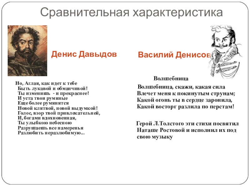 Герой Л.Толстого эти стихи посвятил Наташе Ростовой и исполнил их под свою музыку