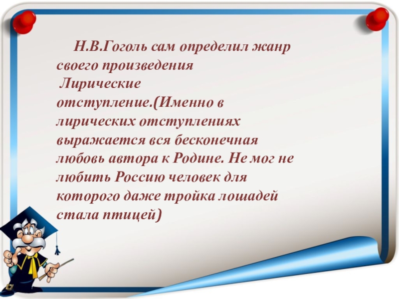 Заключительные строки поэмы посвящены горячо любимой родине: Гоголь-патриот воспевает величие и силу России.