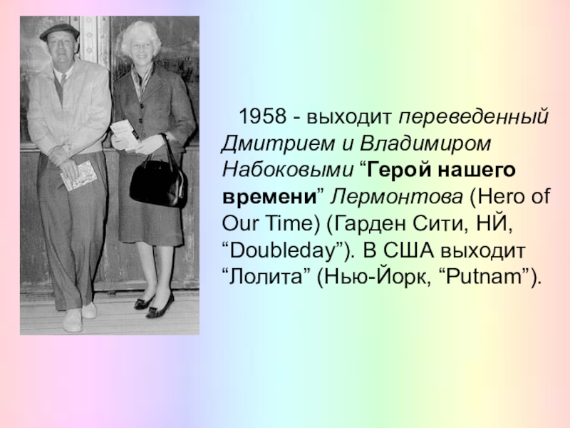 Слайд 32 1958 - выходит переведенный Дмитрием и Владимиром Набоковыми