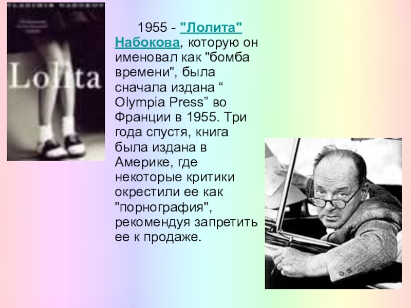 Слайд 30 1955 - "Лолита" Набокова, которую он