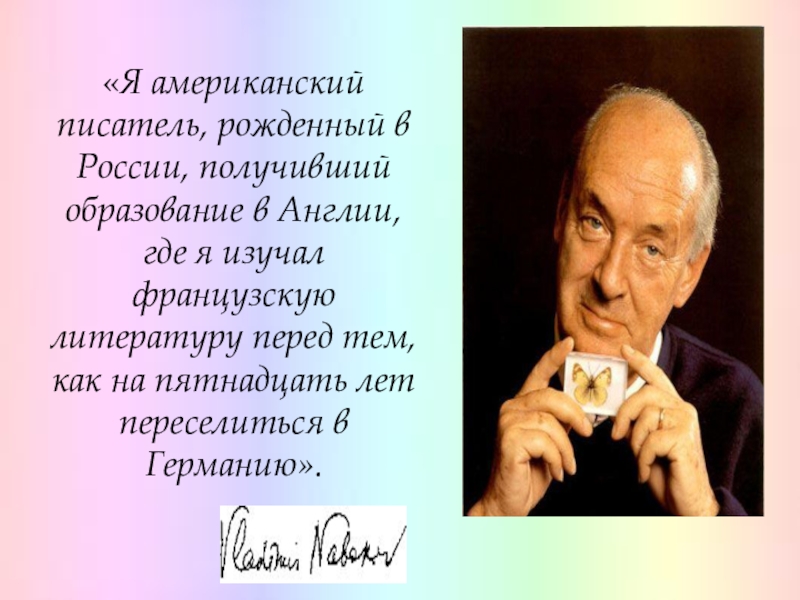 Слайд 55«Я американский писатель, рожденный в России, получивший образование в Англии, где
