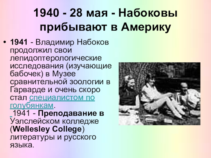 Слайд 26 1940 - Владимир Владимирович решился уехать в Америку потому,