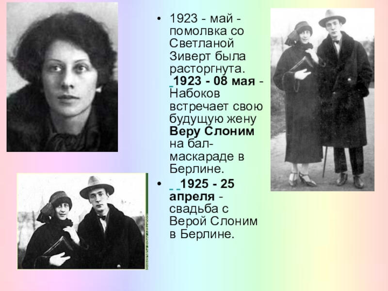 1925 - 25 апреля - свадьба с Верой Слоним в Берлине.
