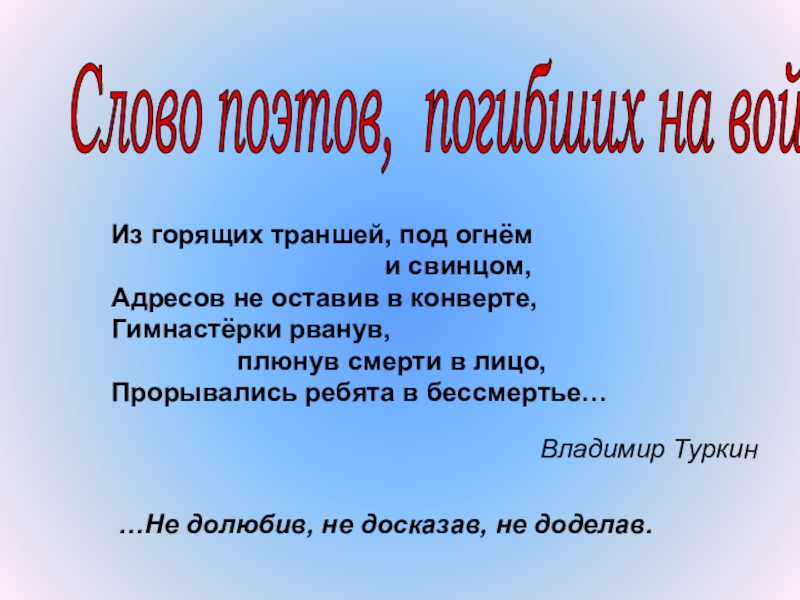 …Не долюбив, не досказав, не доделав.