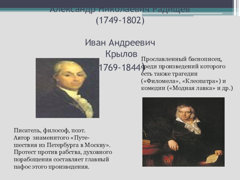 шествия из Петербурга в Москву». Протест против рабства, духовного порабощения составляет главный пафос этого произведения.