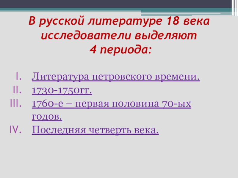 Слайд 2В русской литературе 18 века исследователи выделяют