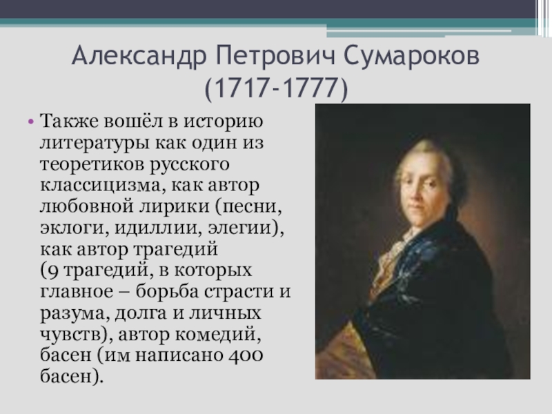 Слайд 10Александр Петрович Сумароков (1717-1777)