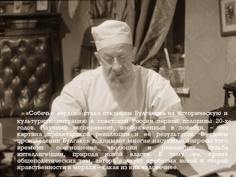Слайд 5 «Собачье сердце» стало откликом Булгакова на историческую и культурную