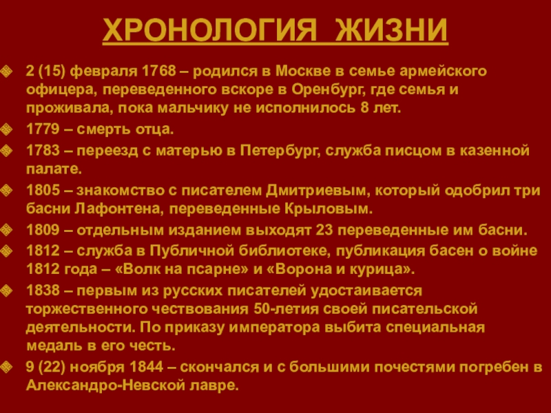 Слайд 3ХРОНОЛОГИЯ ЖИЗНИ