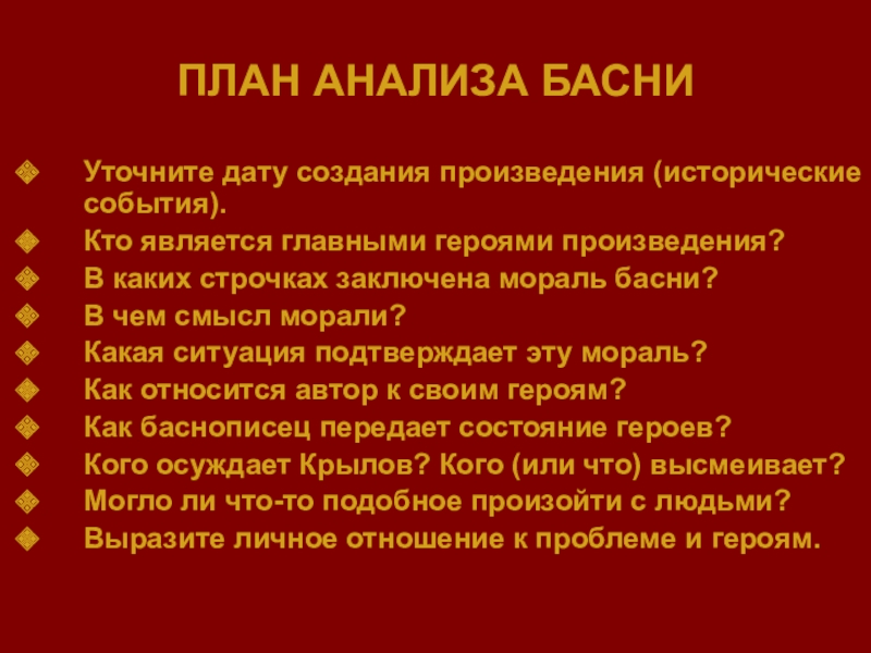 Слайд 20ПЛАН АНАЛИЗА БАСНИ
