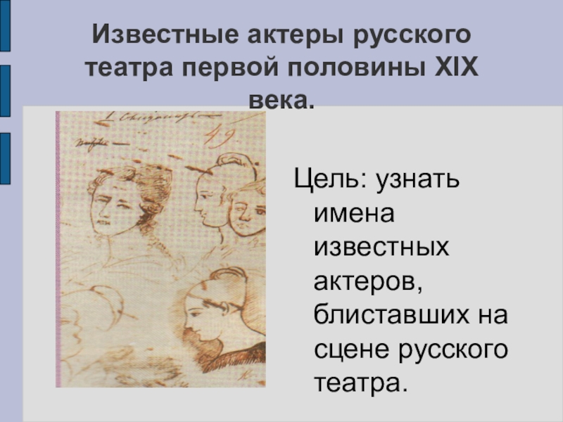 Слайд 25Известные актеры русского театра первой половины XIX века.