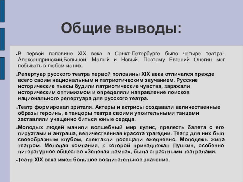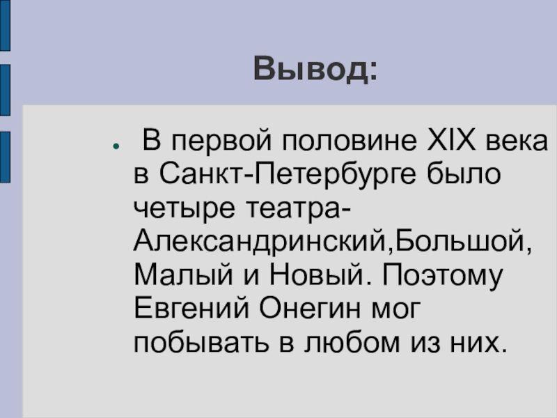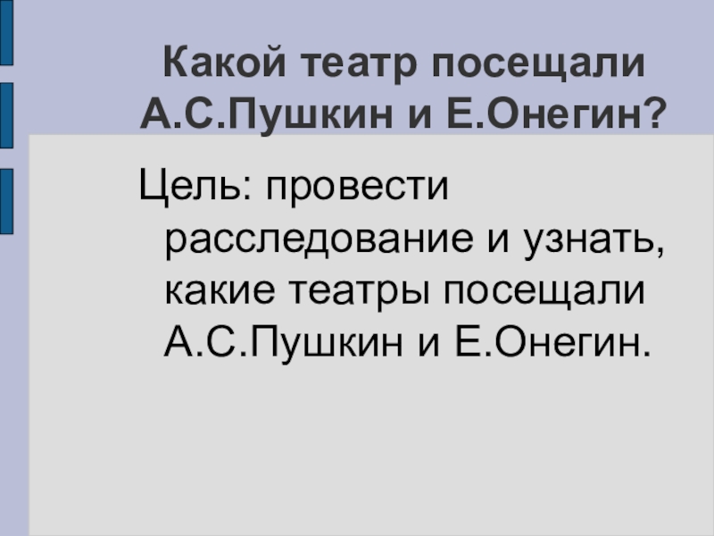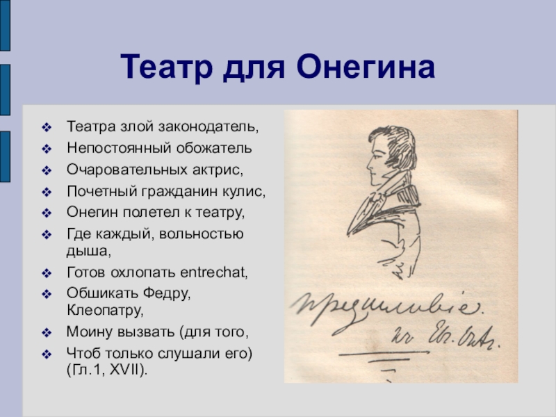 Слайд 10Какой театр посещали А.С.Пушкин и Е.Онегин?