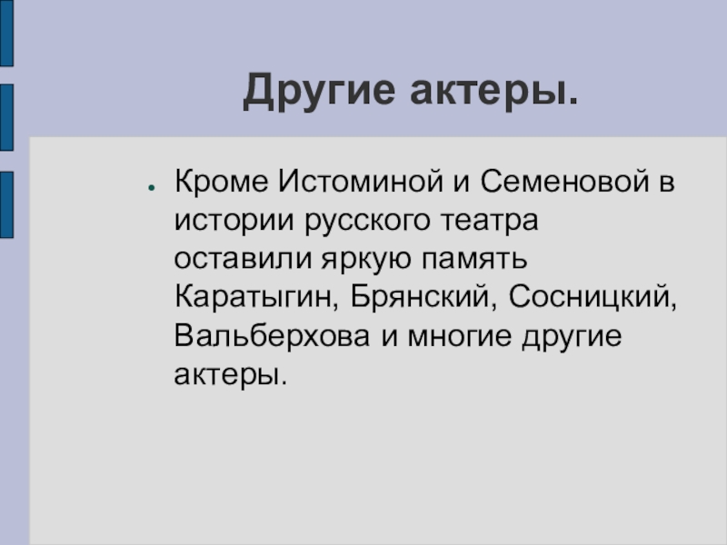 Кроме Истоминой и Семеновой в истории русского театра оставили яркую