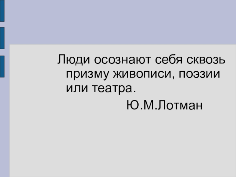 Слайд 2Люди осознают себя сквозь призму живописи, поэзии или театра.