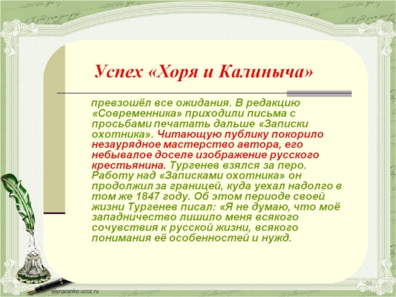 В финале рассказа звучит фраза: «Стреляй себе тетеревов да старосту меняй почаще». Какую оценку, по вашему, дает помещику Тургенев устами крепостного мужика?