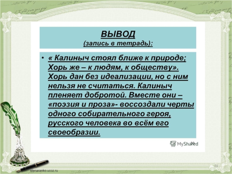 доброту и искренность в нечеловеческих условиях, и поверья, сказки русского народа, и, конечно же, прекрасные картины природы средней полосы России.