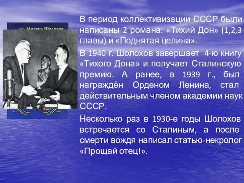 Слайд 7В период коллективизации СССР были написаны 2 романа: «Тихий Дон» (1,2,3