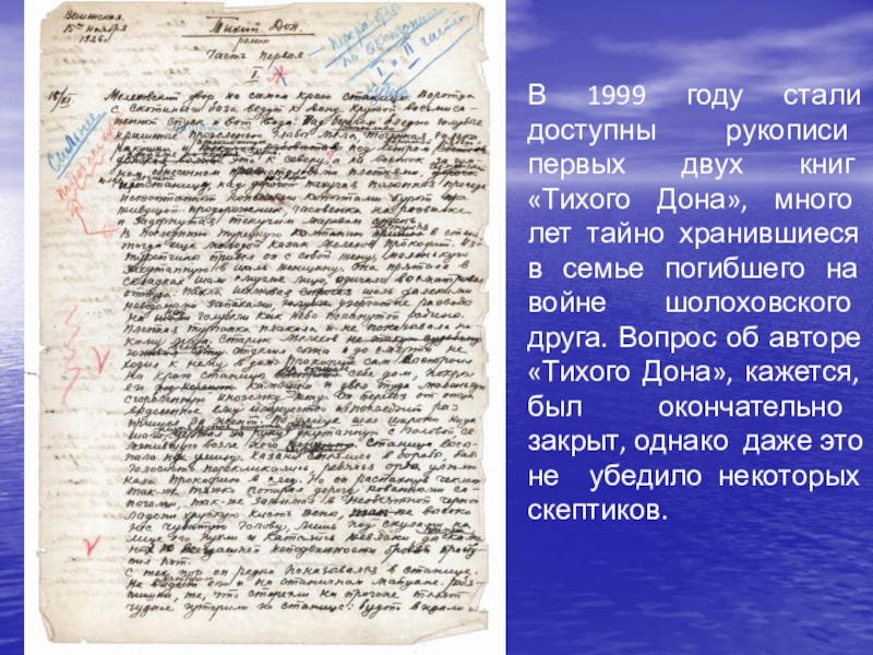 В 1999 году стали доступны рукописи первых двух книг «Тихого Дона»,