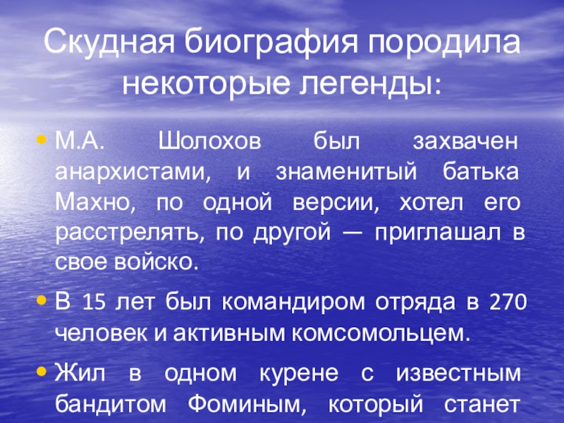 М.А. Шолохов был захвачен анархистами, и знаменитый