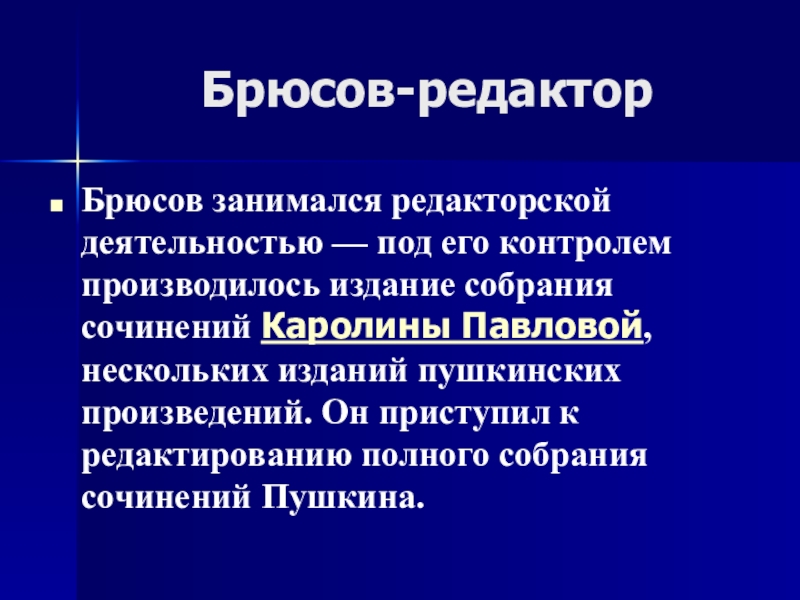 Слайд 20В своей поэзии Брюсов то стремится к новаторству, то вновь уходит