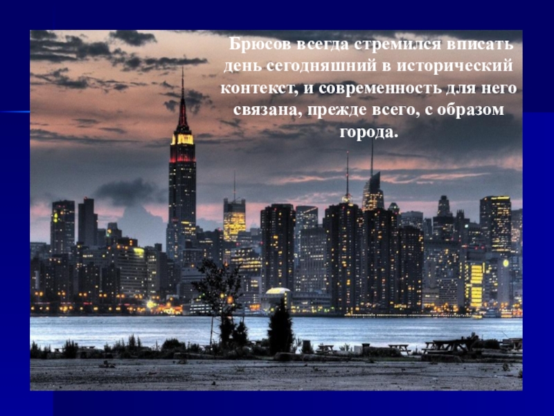 Слайд 21 Брюсов всегда стремился вписать день сегодняшний в исторический контекст, и