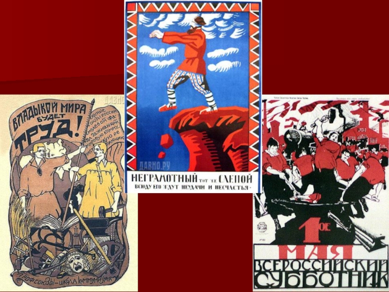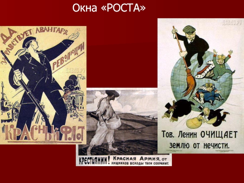 Стремясь использовать все художественные средства для поддержки нового государства, пропаганды новых ценностей, Маяковский пишет злободневную сатиру, стихи и частушки для агитационных плакатов («Окна РОСТА», 1918-21).
