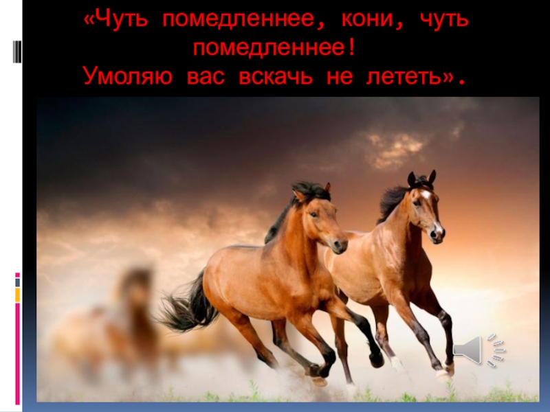Слайд 12«Чуть помедленнее, кони, чуть помедленнее! Умоляю вас вскачь не лететь».