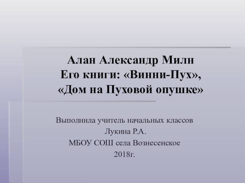 столетия, автор знаменитого «Винни-Пуха». Родился 18 января 1882 в Лондоне.