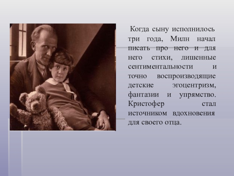 Слайд 5 Когда сыну исполнилось три года, Милн начал писать про