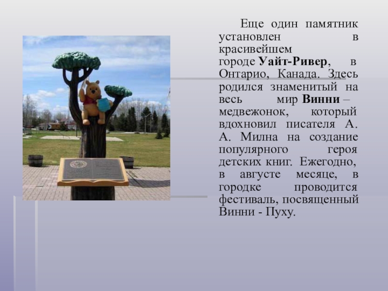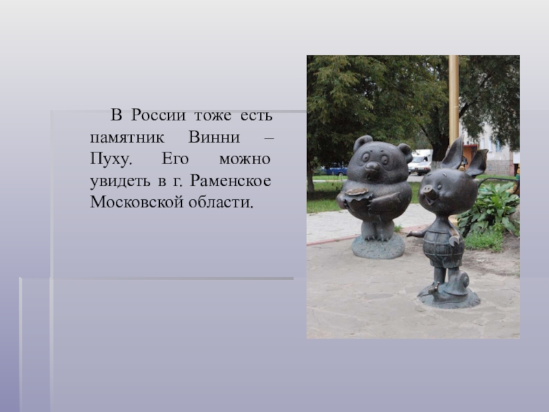 Слайд 23 В России тоже есть памятник Винни –Пуху. Его