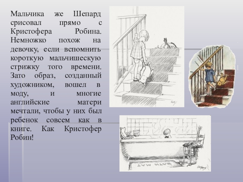 Слайд 14Мальчика же Шепард срисовал прямо с Кристофера Робина. Немножко похож на