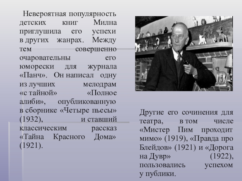 Слайд 9 Невероятная популярность детских книг Милна приглушила его успехи