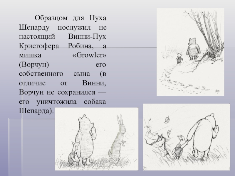 Слайд 13 Образцом для Пуха Шепарду послужил не настоящий Винни-Пух