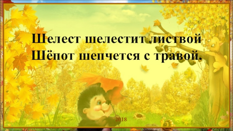 Слайд 1Шелест шелестит листвой Шёпот шепчется с травой.