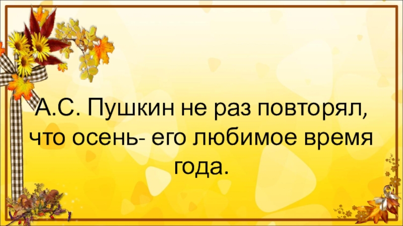 Слайд 6А.С. Пушкин не раз повторял, что осень- его любимое время года.