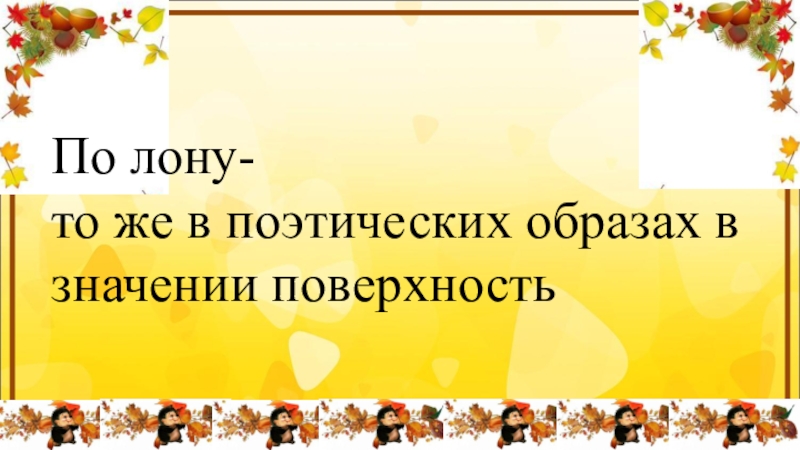 Слайд 14По лону- то же в поэтических образах в значении поверхность