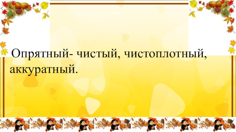 Слайд 12 Опрятный- чистый, чистоплотный, аккуратный.