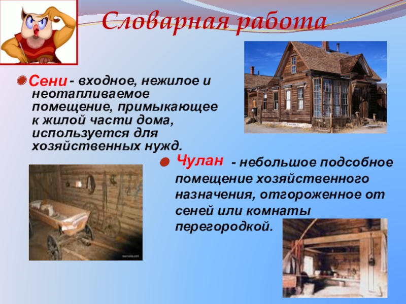 - небольшое подсобное помещение хозяйственного назначения, отгороженное от сеней или комнаты перегородкой.