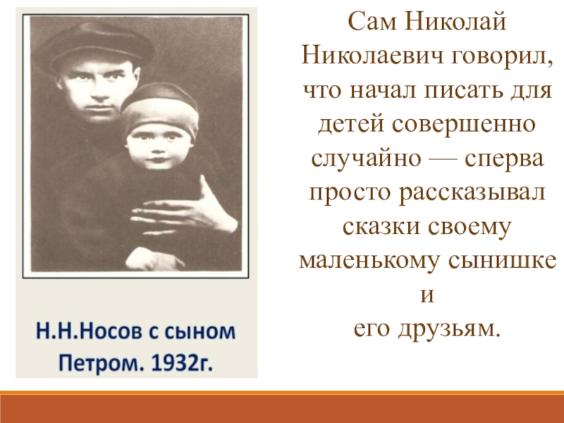 Слайд 7Сам Николай Николаевич говорил, что начал писать для детей совершенно случайно