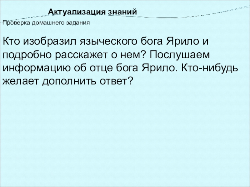 расскажет о нем? Послушаем информацию об отце бога Ярило. Кто-нибудь желает дополнить ответ?