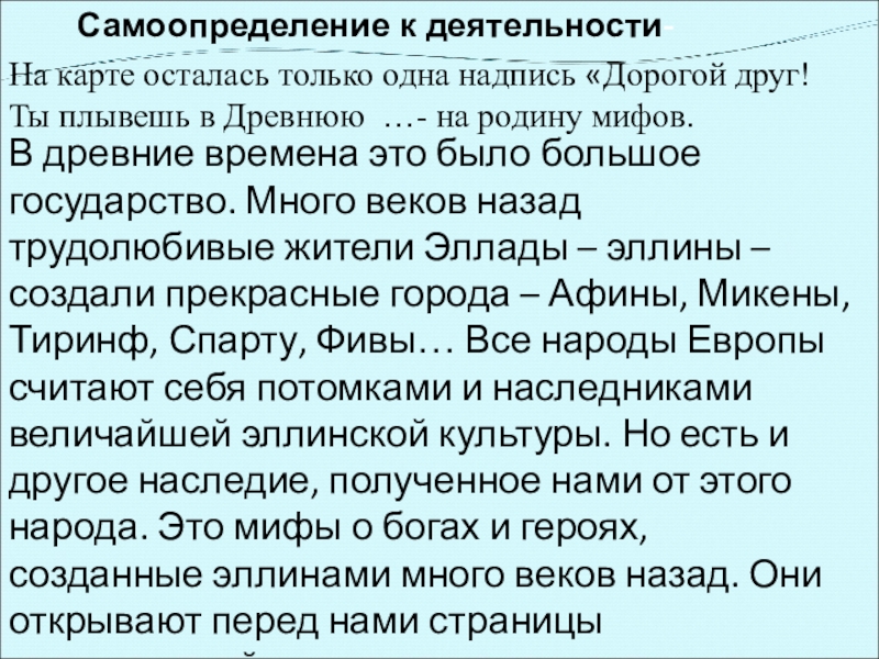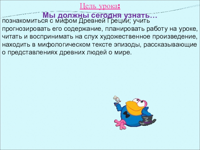 познакомиться с мифом Древней Греции; учить прогнозировать
